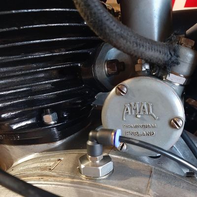 Greeves Hawkstone gearbox and primary breathers with quick release fitting. Especially good for stopping water entering your gearbox on those wet races or from washing your bike. Comes with a new filler bolt, quick release fitting and pipe. £16.50 plus P&P